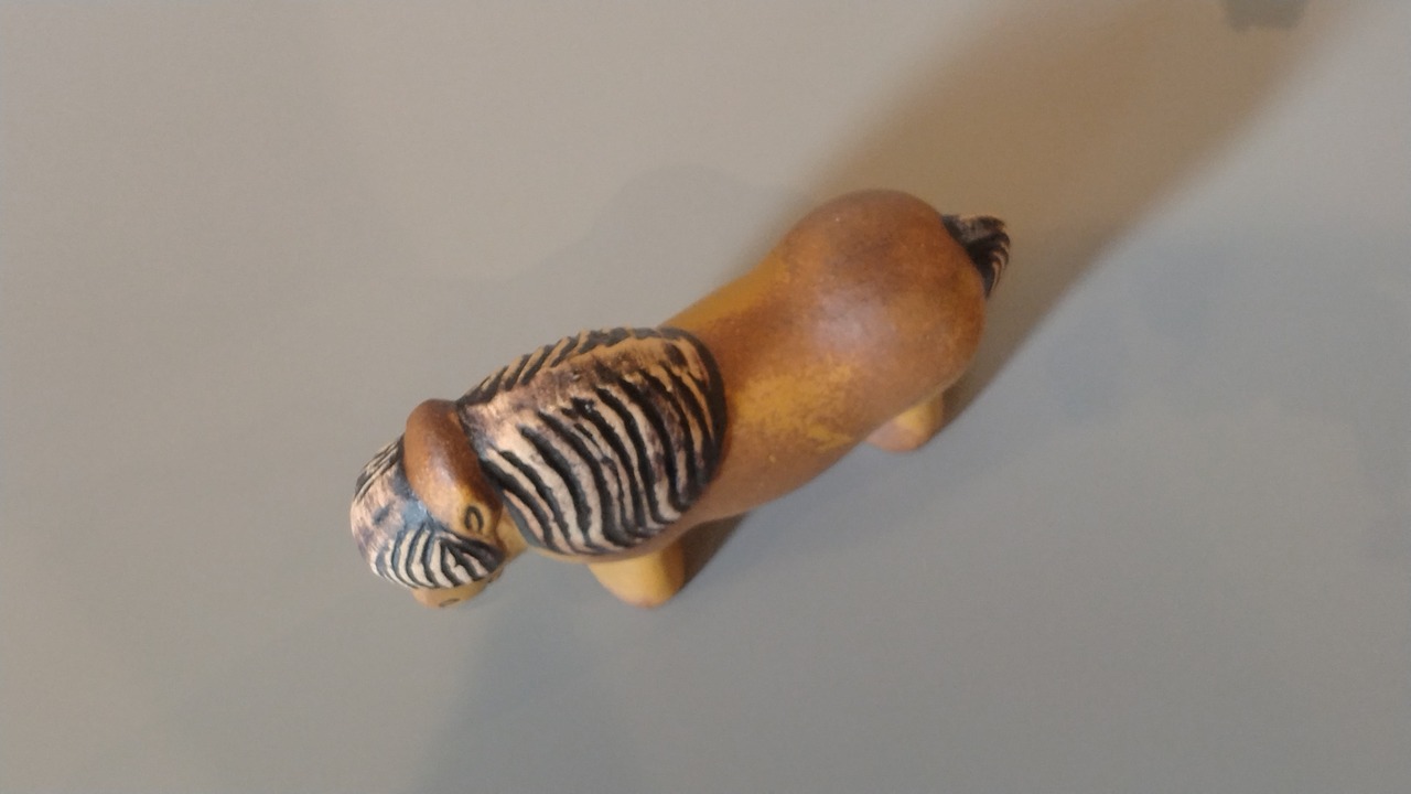 ぽってりとしたフォルムと、短めの足。すこし前を見つめるような眼差しは、どこか誇らしげでもあり、やさしげでもあります。