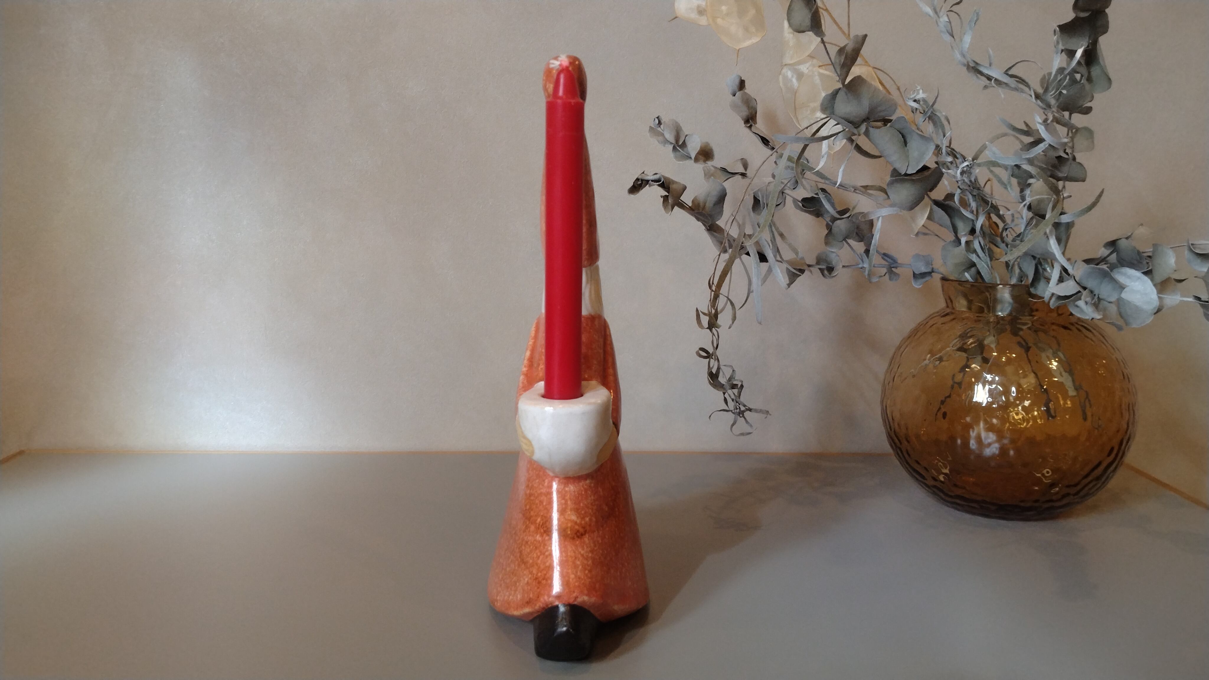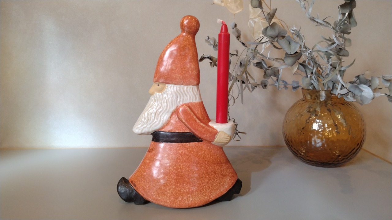 この時期のサンタは右に左にどたばたと動き回って、もう大忙しですね!後ろに組んだ手にはキャンドルを立てることができます。(キャンドルは一緒にお送りします(^^♪)