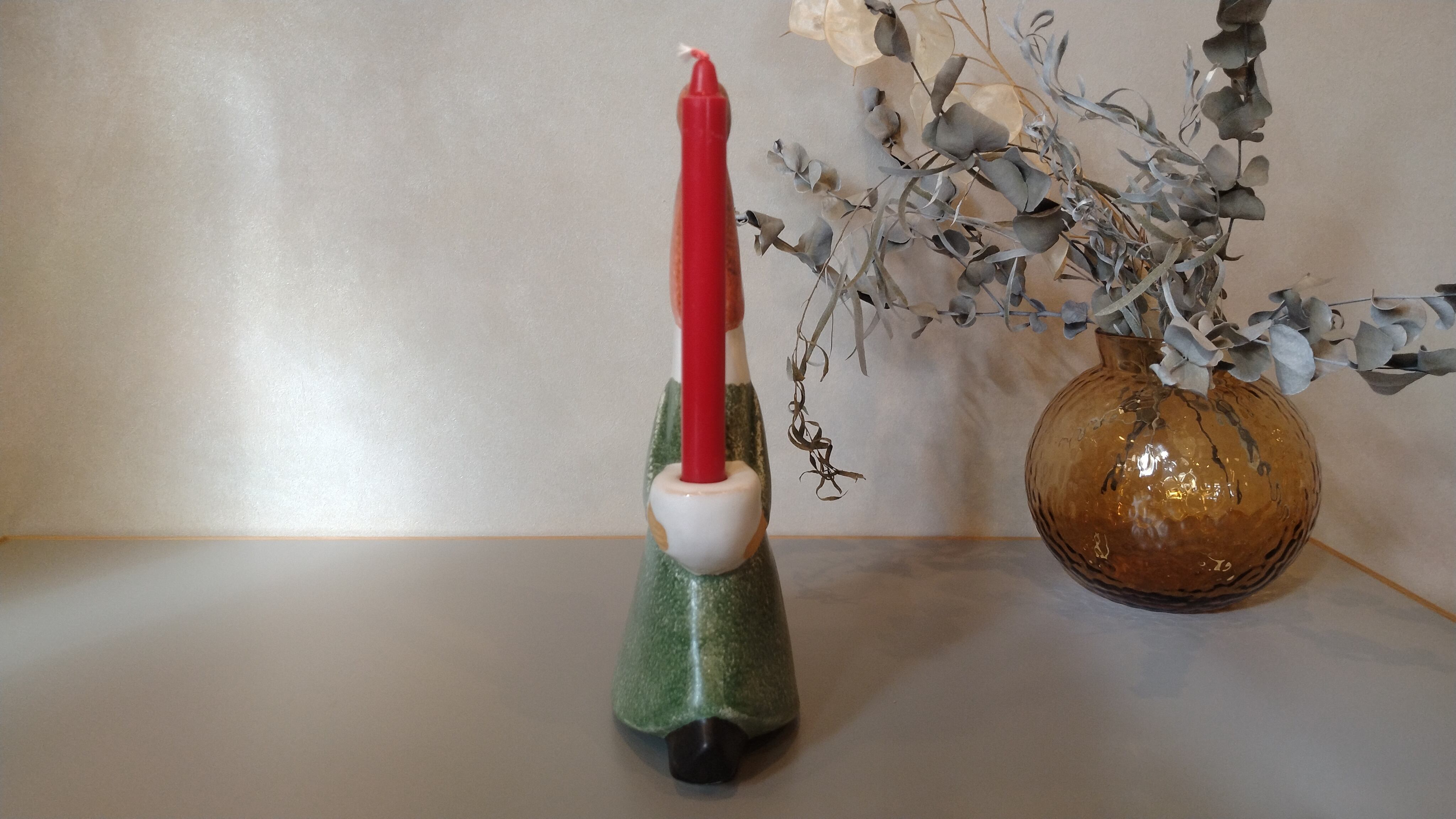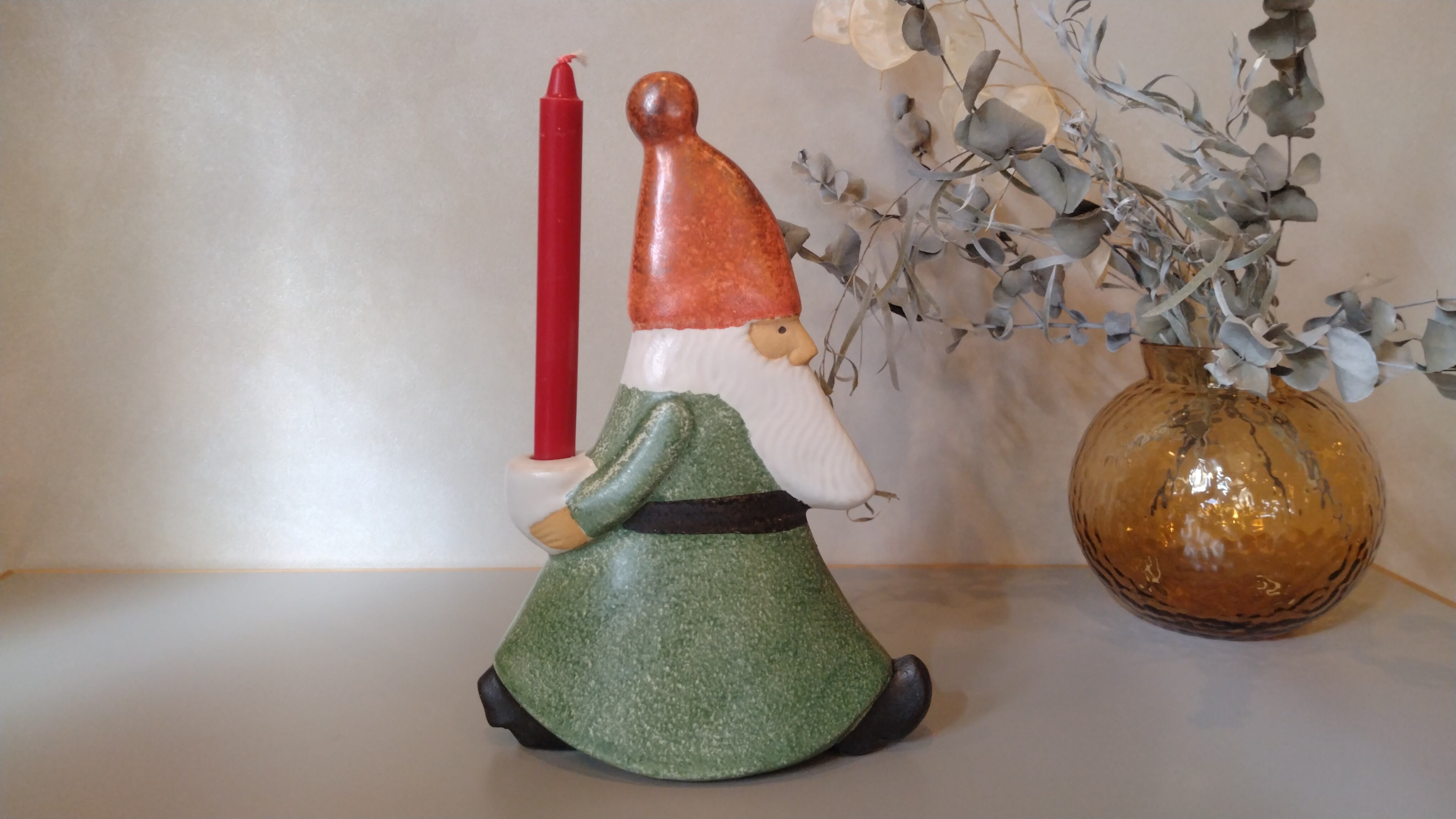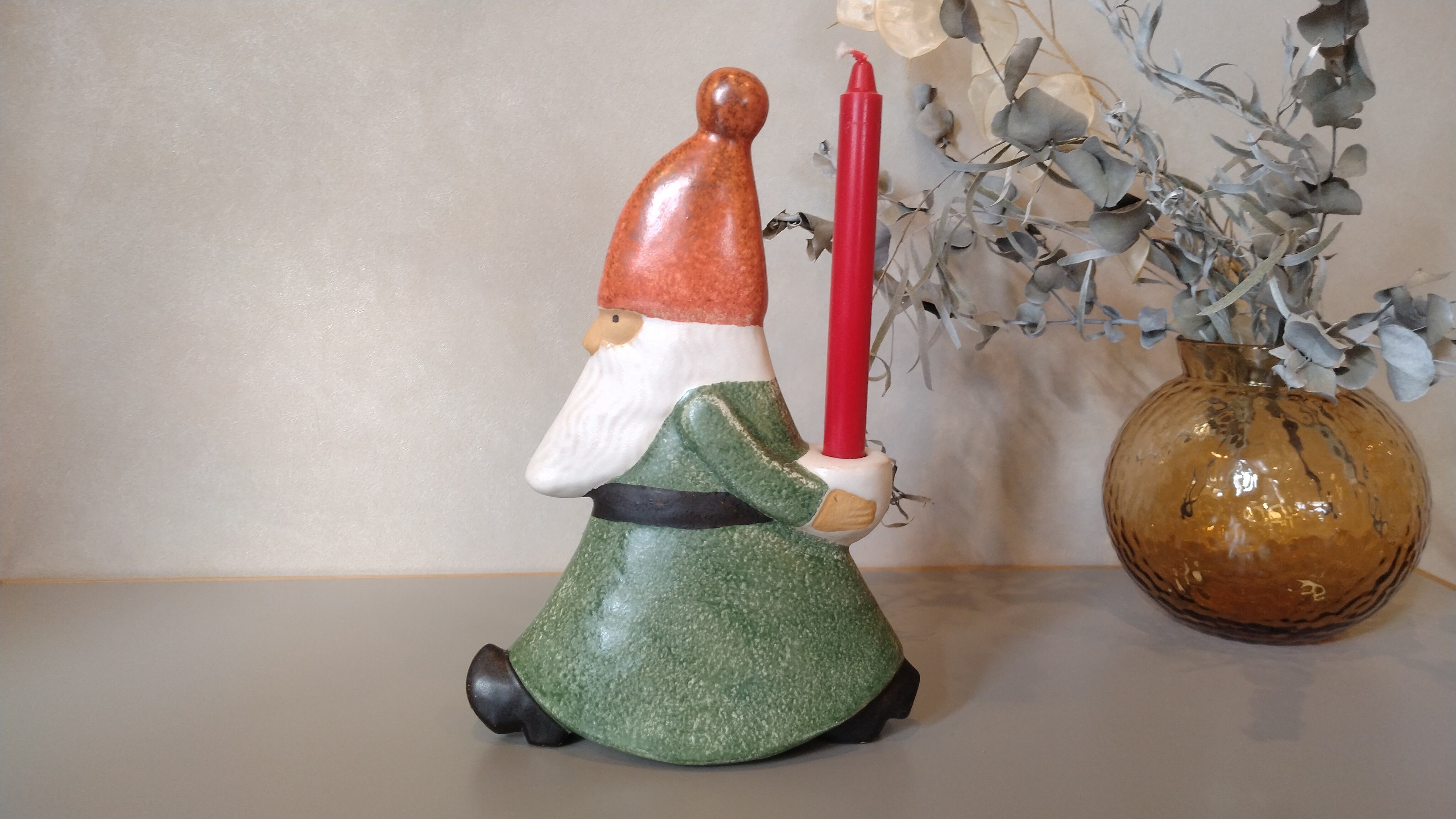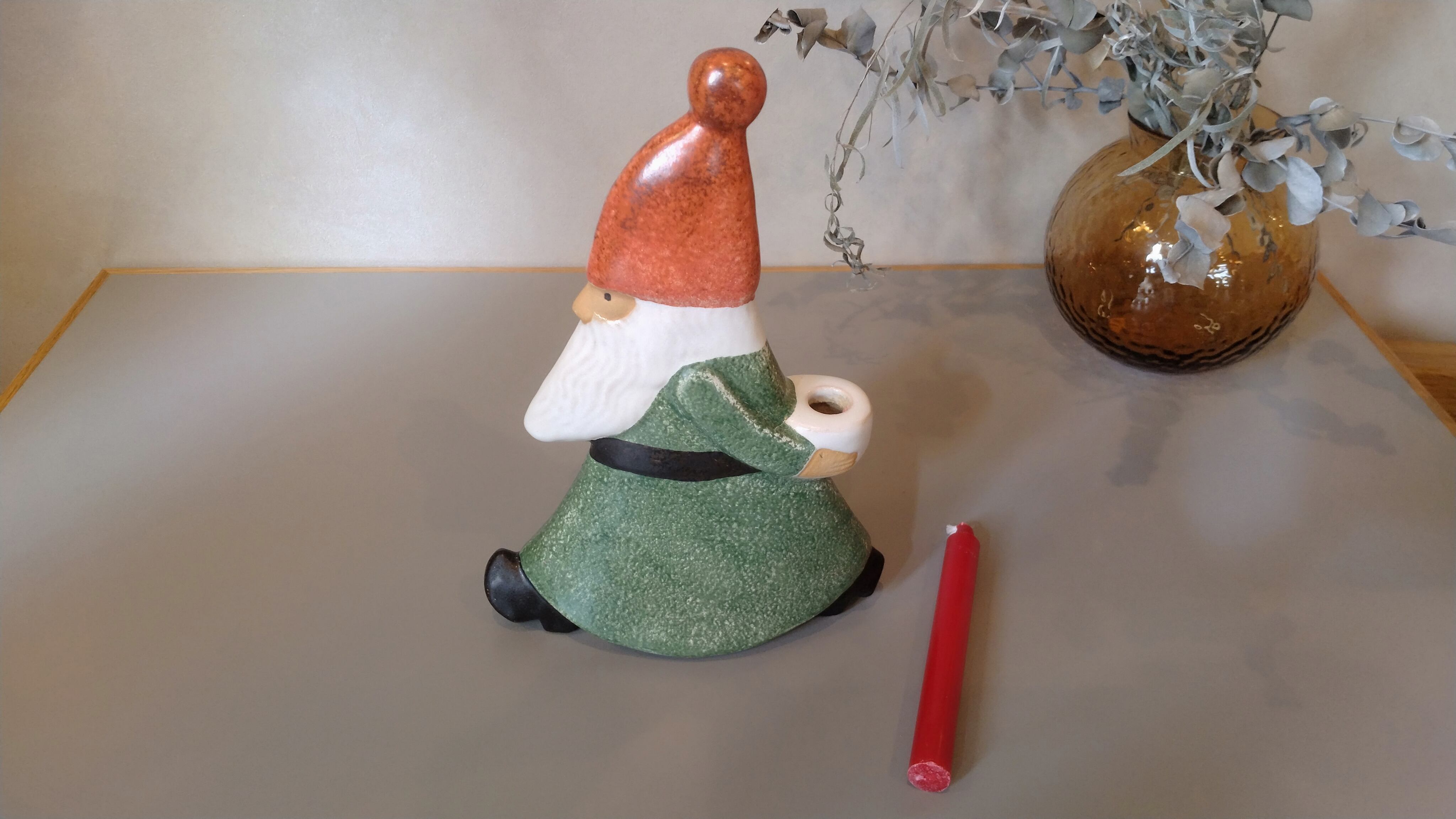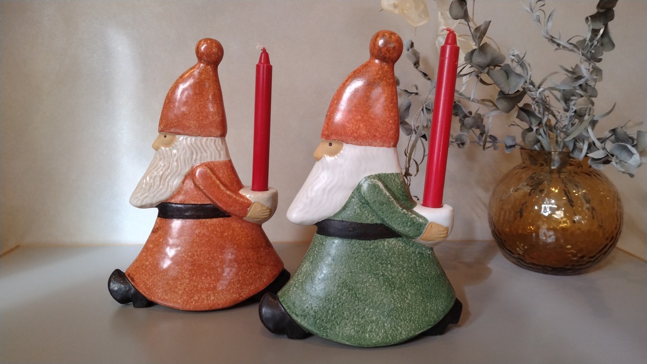 この時期のサンタは右に左にどたばたと動き回って、もう大忙しですね!後ろに組んだ手にはキャンドルを立てることができます。(キャンドルは一緒にお送りします(^^♪)