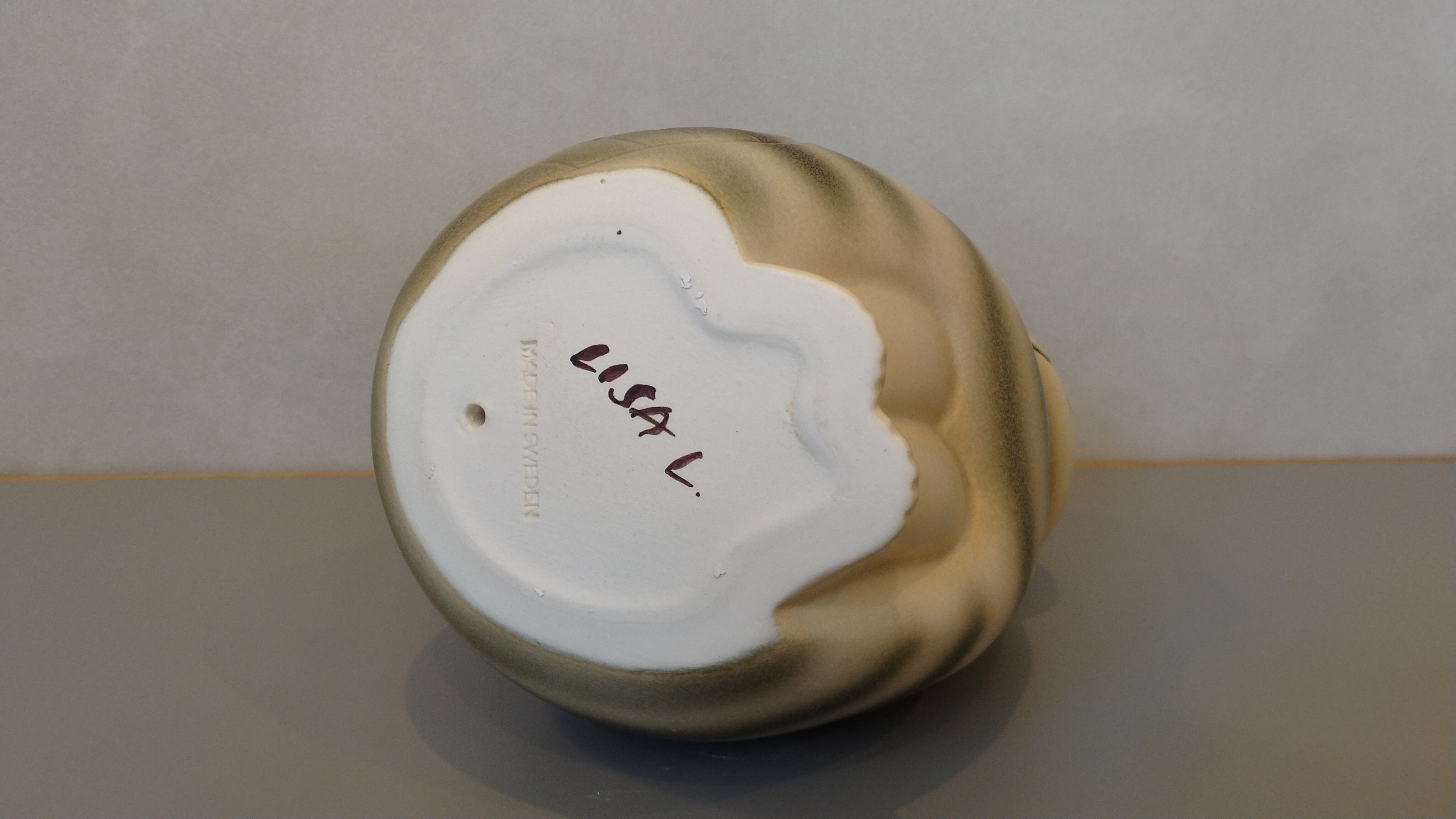 All pieces are produced at Keramikstudion Gustavsberg in Sweden. As each is handmade, no two are identical—variations in glaze tone, expression, and finish are part of their unique charm. The signature on the base may also vary depending on the artisan and production period.